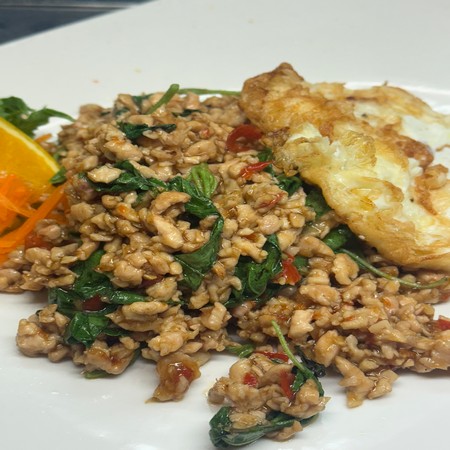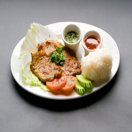 All main course dishes come with your choice of Jasmine White Rice or Brown Rice Except Noodle and Fried Rice Dishes. Substitute Sticky Rice or Egg Fried Rice for extra. Available from 11 to 2:15 Monday through Friday.